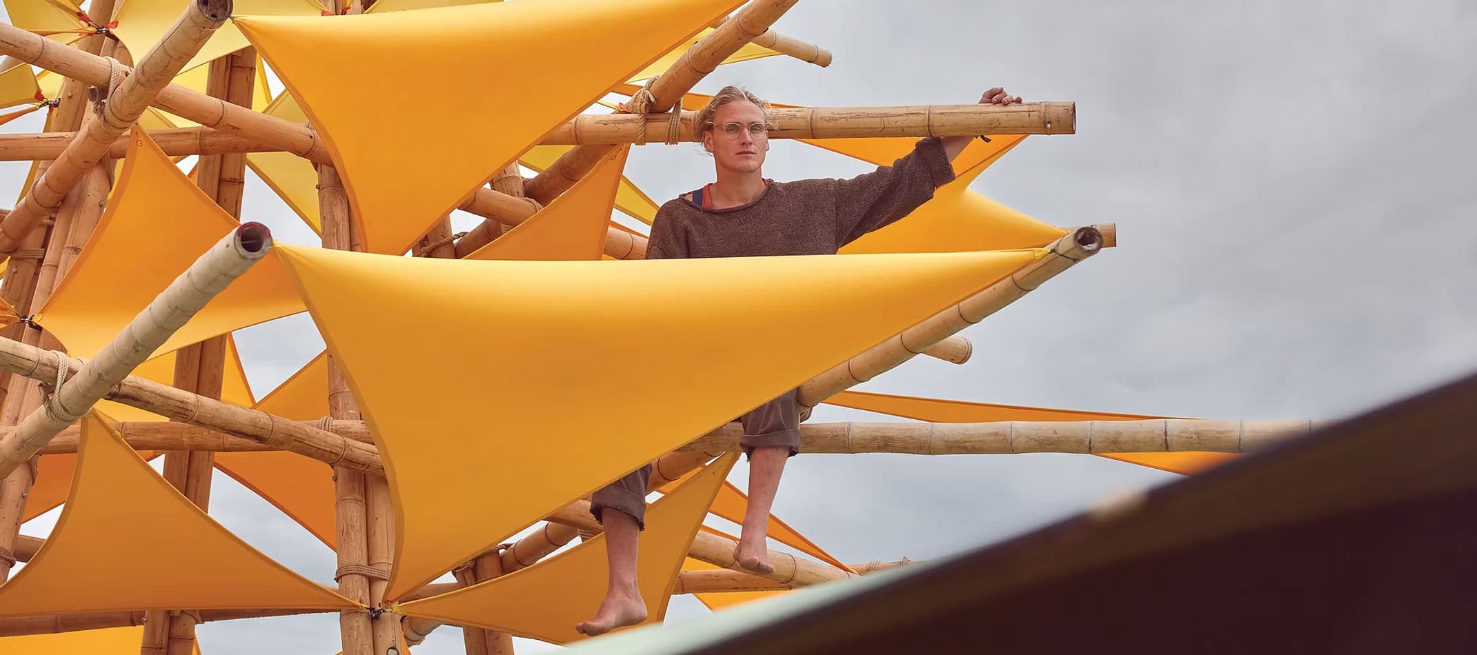 Our founder, Joseph Williams, grew up in East Sussex and trained as an architect. In 2014 during a visit to Portugal's Boom Festival, he witnessed Gerard Minikawa's 50-meter bamboo dance temple and was inspired to create his own structures that were temporary, nomadic, and built entirely from natural materials. After training with Gerard's team in California, Joseph returned home to launch Bamboology.